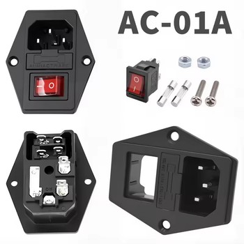 AC-01A 10A 250V 3Pin AC Power Socket with Fuse Holder Rocker Switch NEW AC Power Cord Inlet Plug Socket C13 C14